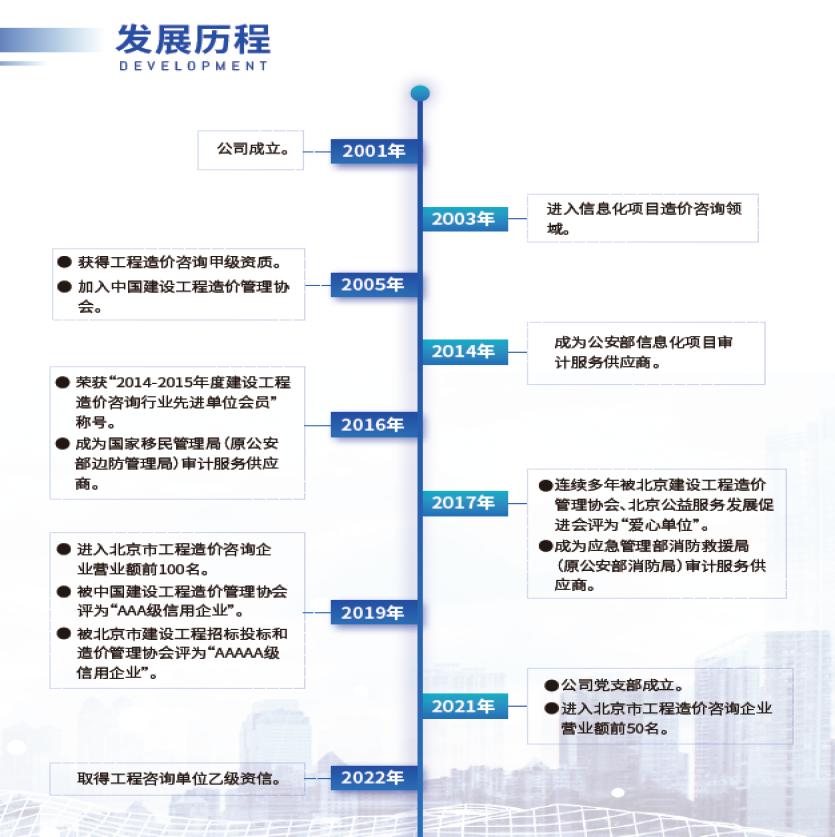 公司在十幾年的發(fā)展歷程中,承接業(yè)務的工程造價達數(shù)百億元,經(jīng)過審核為國家節(jié)省資金達數(shù)十億元,取得了很好的經(jīng)濟效益和社會效益。多年的努力,使我們擁有了廣泛的客戶群體,通過認真、優(yōu)質(zhì)、細致的服務,業(yè)務得到長足的發(fā)展,業(yè)務范圍涵蓋多種行業(yè),是國內(nèi)基本建設(shè)項目和信息化項目造價咨詢領(lǐng)域項目案例最全面、最專業(yè)的公司之一。